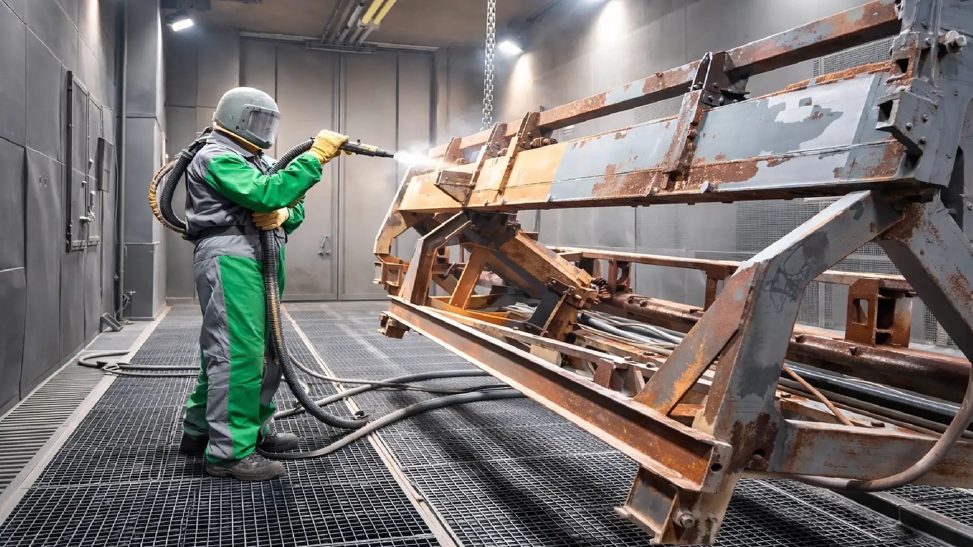 Steel Blast Rooms are purpose-built enclosed systems designed for heavy-duty abrasive blasting of large steel components.